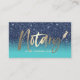 Notary Loan Signing Agent Modern Navy & Teal Glitter Gold Script Business Cards.