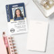 Professional Notary Public ID badge with a profile photo and accreditation symbol. This editable template can be personalised with a name, credentials, and commission, along with a certification mark or your company logo for branding. Additional information and a QR code can be included on the back. This classic design blends both traditional and contemporary features, creating an elegant yet friendly appearance. It offers fully customisable text to fit your business brand. Perfect for a Notary Public, Loan Signing Agent, Certified Notary Trust Delivery Agent (CNTDA), Mobile Notary, Apostille or other legal professional. Printed colours: very dark navy blue, white and gold colour. Shop the online collection for more popular product ideas and supplies designed for notaries!
