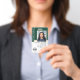 Professional Notary Public ID badge with a profile photo and accreditation symbol. This editable template can be personalised with a name, credentials, and commission, along with a certification mark or your company logo for branding. Additional information and a QR code can be included on the back. This classic design blends both traditional and contemporary features, creating an elegant yet friendly appearance. It offers fully customisable text to fit your business brand. Perfect for a Notary Public, Loan Signing Agent, Certified Notary Trust Delivery Agent (CNTDA), Mobile Notary, Apostille or other legal professional. Printed colours: very dark green, white and gold colour. Shop the online collection for more popular product ideas and supplies designed for notaries!