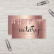 Present your best self to your clients. Black, fancy handwritten script typography with feather pen and pink rose gold glitter drips overlay a faux metallic copper ombre background. Personalise with your full name and business info on the front. Fill in the back side with your phone numbers, address, email, website, and other information. Makes a chic, professional, and stylish statement wherever you go.