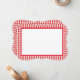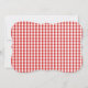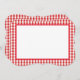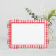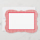 This note card is shown in a red and white plaid print.