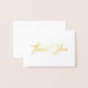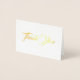 This mini size thank you note card is shown in a basic white card stock paper with a lovely gold foil print design.