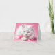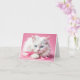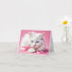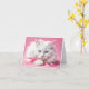 Pretty white cat with blue eyes and pink ribbons for blank note card.