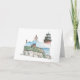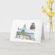 Note card featuring Southeast Lighthouse illustration in a combination of watercolor and pen and ink on the front. This lighthouse is located in Block Island, RI. The inside is blank and can be customised. The back has an "I love RI" icon with a lighthouse for the "I". "Southeast Lighthouse" is written beneath it and is also customisable. This is a note card for anyone who loves Rhode Island and its lighthouses.