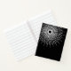 This college lined notebook is shown in a black and white abstract art print.