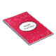 Petite stars in silver-grey grace the cover of this custom name bride's notebook. Shown in a bright Strawberry Red with a white oval and coordinating border colours of Black and Blush Pink along with fun and fanciful text of your personalised name in centre and the phrase "Bride Notebook" in Black. Customise this item.