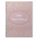 Notebook shown with a graphic of golden coloured petite stars in on a light dusty rose-blush pink background with the texts of " Olivia's" and "Bride Notebook" encircled by an oval with borders of coordinating colours. Customise this item and change the name to yours or take off the name and buy as is. White, golden and dusty rose pink colourings.