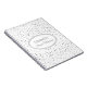This notebook is created in white with petite silver-grey coloured stars all over the front behind an oval in white with coordinating borders of silver-grey colour. Your personalised name in centre of oval along with "Bride Notebook" for you to customise. Coordinates beautifully with the wedding guestbook to match.