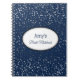 Petite stars in silver-grey grace the cover of this custom name bride's notebook. Shown in deep sapphire blue with a white oval and coordinating border colours of black and powder blue slate along with fun and fanciful text of your personalised name in centre and the phrase "Bride Notebook". Customise this item.