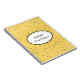 Petite stars in silver-grey grace the cover of this custom name bride's notebook. Shown in a bright Sunflower Yellow with a white oval and coordinating border colours of Black and Celery Green along with fun and fanciful text of your personalised name in centre and the phrase "Bride Notebook" in Black. Customise this item.