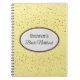 Notebook shown with a graphic of petite stars in golden on a yellow background with the phrase " Bride's Notebook" inside an oval shape with coordinating borders. Customise this item and change the name to yours or take off the name, change the star colours in filter, background colour or buy as is. Golden, white, black and yellow colourings.