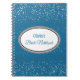Notebook shown with a graphic of petite stars in grey on a periwinkle background with the phrase " Bride's Notebook" inside an oval shape with coordinating borders of grey and black. Customise this item and change the name to yours or take off the name, change the star colours in filter, background colour or buy as is. Grey, White, Cerulean and Black.
