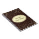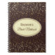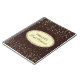 Notebook shown with a graphic of petite stars in golden on a Bordeaux background with the phrase " Bride's Notebook" inside an oval shape with coordinating borders of neutral brown and taupe. Customise this item and change the name to yours or take off the name, change the star colours in filter, background colour or buy as is. Golden, Ivory, Bordeaux and neutral colourings.