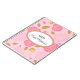 Notebook shown with a graphic of pretty pink roses on a pink background with the phrase " Bride Notebook" inside an oval shape with coordinating borders. Customise this item and change the name to yours or take off the name.