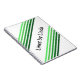 Green lines in five varying shades, dark to light, bottom to top. Two Sets of stripes are placed diagonally at opposite corners, Personalise with your text in the middle.