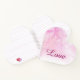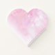This notebook is shown in a cute heart shape with lined pages in a pink watercolor print design.