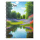 Computer painted A1 image of a pretty pond and banks of wild flowers. The name on the notebook can be changed.