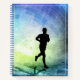 This notebook is shown in a regular shape with college rule pages in a art print of a runner.