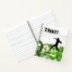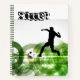 This notebook is shown in a regular shape with lined pages in a sports soccer print design.