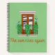 A simple nice design for the notebook is a balcony surrounded by a plant and two birds standing on the planting under the picture and the words of the sunrise again.