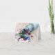A weathered bottle with sea glass overflowing on to the beach sand notecard