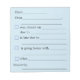 This "Notes for the Teacher" Notepad will make writing those notes a little less dreadful. Includes 40 "ready-to-fill-out" sheets. May be customised to your specifications. Great for coaches, instructors, etc. too!