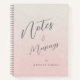 Soft pink gradient watercolor background, with dove grey modern script calligraphy "Notes and Musings" to inspire your creative ideas and thoughts, personalised with your name on the front and your monogram with name on the back. Add your own information by following the "Personalise this template" link.