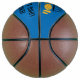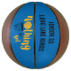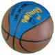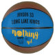 Full size personalised basketball in blue and yellow. The design features the basketball quote "nothing but net", illustrated with a basketball and net. You can add your name, jersey number and team or custom text, which is printed in black uppercase typography. It has a colour palette of blue, black and yellow. Please browse our store for more basketball gifts.
