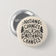 Nothing changes if nothing changes button inspirational lettering. Cosy cabin life aesthetic outfit accessory retro vintage black and beige quotes. Be the change, take action, growth mindset and motivation to stop procrastinating.