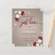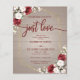 Beautiful and inexpensive burgundy floral geometric on beige rustic wood wedding invitations. Easy to personalise with your details. PLEASE NOTE: The envelopes are NOT INCLUDE; affordable A7 envelopes are available to purchase separately.