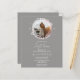 A simple chic floral faux foil wreath grey wedding invitation. Easy to personalise with your details. Geometric photo wedding invitation, modern boho wedding invitation editable, customisable, calligraphy handwritten font, simple, elegant.