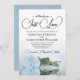 This beautiful wedding invitation features a single romantic long-stemmed pale dusty blue or powder blue coloured rose lying on its side reflecting in a pool of water. The heading is written in fancy script lettering and reads: Nothing Fancy, Just love. This invite is the perfect combination of modern and timeless - it's both classy and whimsical making it perfect for either a formal or casual ceremony.