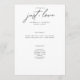 A stunningly simple black and white modern two sided wedding program with a focus on love. Features an elegant modern, clean font and script typography reading "nothing fancy, just love". Ideal for couples planning a minimalist or contemporary ceremony and reception. Created by Simply Farmhouse Press.