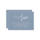 Announce and share your happily ever after in style with our modern dusty blue theme design (Nothing Fancy Just Love) wedding elopement celebration invitation card. It is ideal for couples who have decided to celebrate their best day. With its sophisticated yet playful design, this invitation is sure to set the tone for an unforgettable event. The invitation card features a modern and minimalist script design theme, adding a touch of timeless elegance to your celebration. Designed by TeeshaDerrick