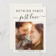 Elegant light cream wedding invitation. The front features your photo, "Nothing Fancy Just Love" in a blend of simple typography and a stylish script with swashes and your first names and wedding date joined together with a heart. On the back, personalise your invitation in elegant typography and input your wedding website address to create a QR code for your guests to scan to RSVP online and to obtain additional wedding details such as accommodations and directions.