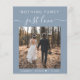 Budget-friendly dusty blue elopement or small private wedding announcement and casual reception invitation featuring your photo and "Nothing Fancy Just Love" in a mix of simple white typography and an elegant white script with swashes. Under your photo, add your first names and wedding or reception date. On the reverse side, personalise your invitation and add your names in a signature-like white script. This budget semi-gloss paper is similar in weight to photo paper. A larger 5x7 traditional card stock version is also available (message us for the link).