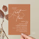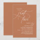 Perfect for couples extending their joyous occasion, this invitation exudes sophistication with a hint of playfulness, setting the stage for a memorable event. Adorned with a timeless modern script design, with white text on terracotta brown copper background, it adds a touch of refined charm to your wedding. Perfect for weddings, vow renewals, engagement parties, or intimate wedding reception, lunch, brunch and dinner, in celebrations of love.