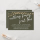 Announce your happily ever after in style (Nothing Fancy, Just Love) with our modern rustic olive green cottage string lights design wedding elopement celebration invitation card. Our Happily Ever After Party Celebration Invitation card is ideal for couples who have decided to elope and want to host a party to celebrate their union. With its sophisticated yet playful design, this invitation is sure to set the tone for an unforgettable event. The invitation card features a minimalist rustic elegant design scheme, adding a touch of timeless elegance to your celebration. Designed by TeeshaDerrick
