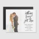 Save the Date announcement featuring "Nothing fancy just love" in a fun script. Announce to your friends and family that you are getting married! Customise with your information and photo.