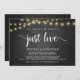 Beautiful Nothing Fancy, Just Love, Wedding Elopement Announcement / Invitation card, in Rustic farm chalkboard, String Lights design. This is perfect for your wedding reception and post-wedding celebration party. Add your details in matching font / lettering.