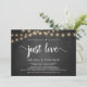 Beautiful Nothing Fancy, Just Love, Wedding Elopement Announcement / Invitation card, in Rustic farm chalkboard, String Lights design. This is perfect for your wedding reception and post-wedding celebration party. Add your details in matching font / lettering.