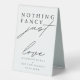 This modern chic black and white just love Hand Fan is perfect for a simple wedding. The minimalist boho design features rustic unique and stylish bohemian typography in minimal clean black and white. The quote reads 'nothing fancy just love'. Personalise the sign with the names of the couple, and the wedding date