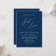 Elegantly announce your happily ever after with our modern romantic Navy Blue themed wedding elopement celebration invitation card, "Nothing Fancy, Just Love". Tailored for couples continuing their love story, this invitation strikes a perfect balance of sophistication and charm, setting the scene for an unforgettable event. Featuring a modern contemporary script design, it adds a touch of timeless grace to your special day. Designed by the talented TeeshaDerrick, this invitation is a stylish expression of your enduring love.
