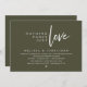 Announce and share your happily ever after in style with our modern olive green theme design (Nothing Fancy Just Love) wedding elopement celebration invitation card. It is ideal for couples who have decided to celebrate their best day. With its sophisticated yet playful design, this invitation is sure to set the tone for an unforgettable event. The invitation card features a modern and minimalist script design theme, adding a touch of timeless elegance to your celebration. Designed by TeeshaDerrick
