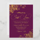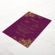 These beautiful foil print invitations feature a light hearted design that is elegant, romantic, cute, and fun. It features a magenta, plum, or berry purple coloured background with modern script lettering with curls and swashes on the letters spelling out "Nothing Fancy, Just Love." There are ornate decorative curls and swirls in the corners. Stylish, elegant, romantic, and fun, this invitation is the perfect blend of elegance and whimsy, and a wonderful way to invite your friends and family to share in your joy on your special day.