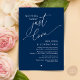 Mark the beginning of your forever with elegance using our contemporary navy blue themed wedding elopement celebration invitation card, "Nothing Fancy Just Love". Perfect for couples extending their joyous occasion, this invitation exudes sophistication with a hint of playfulness, setting the stage for a memorable event. Adorned with a timeless romantic script theme, it adds a touch of refined charm to your festivities. Crafted by TeeshaDerrick, this invitation promises to beautifully capture your love story.