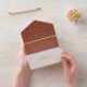 Elegant elopement or private wedding announcement and casual reception all-in-one terracotta invitation featuring "Nothing Fancy Just Love" showcased in simple lettering and a chic modern script with swashes, your marriage announcement and reception invitation in simple lettering, and a white tear-away RSVP postcard, all rendered in your choice of genuine gold, silver or rose gold foil.