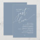 Mark the beginning of your forever with elegance using our contemporary romantic dusty blue theme wedding reception elopement celebration invitation card, "Nothing Fancy Just Love". Perfect for couples extending their joyous occasion, this invitation exudes sophistication with a hint of playfulness, setting the stage for a memorable event. Adorned with a timeless romantic script theme, it adds a touch of refined charm to your festivities. Crafted by TeeshaDerrick, this invitation promises to beautifully capture your love story.