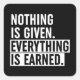 Nothing Is Given Everything Is Earned Square Sticker