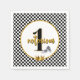 The BIG One Urban Retro 90's Hip Hop 1st Birthday Vibe! Black, white and gold colours. chequerboard pattern background